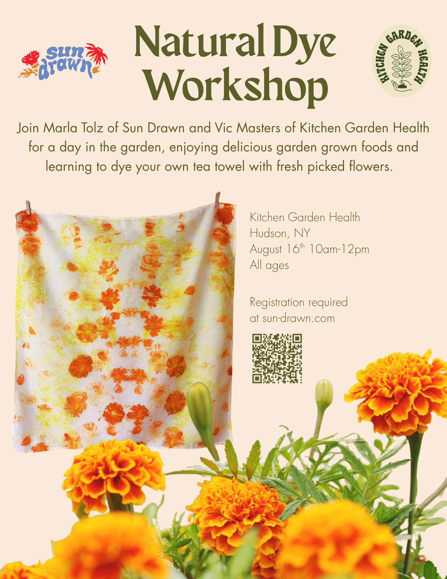 Join Marla Tolz of Sun Drawn and Vic Masters of Kitchen Garden Health for a day in the garden, enjoying delicious garden grown foods and learning to dye your own tea towel with fresh picked flowers.